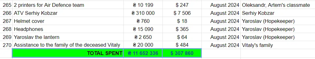 | AUGUST 2024 | 2.010$ (45 donations+6 subscribers) | 8.700$ |