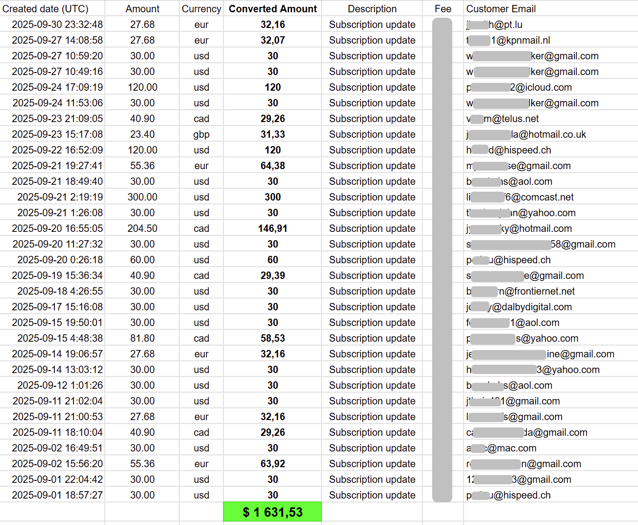 SEPTEMBER 2025 | 1.961$ (11 donations+31 subscribers) | 3777$ |