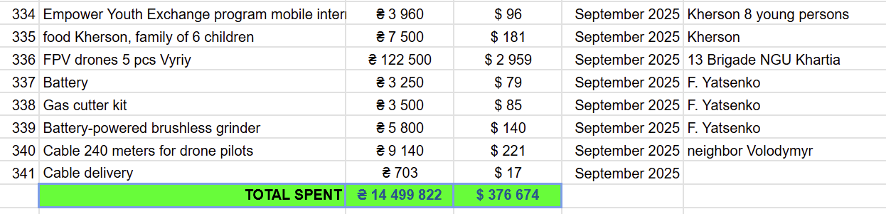 September 2025 ResultsSingle donations through our website: $330Monthly subscription donations: $1631 Your TOTAL contributions: $1961 In total, our foundation spent $3777 You can sign up for a monthly donationYou can choose the amount of donations you want. |