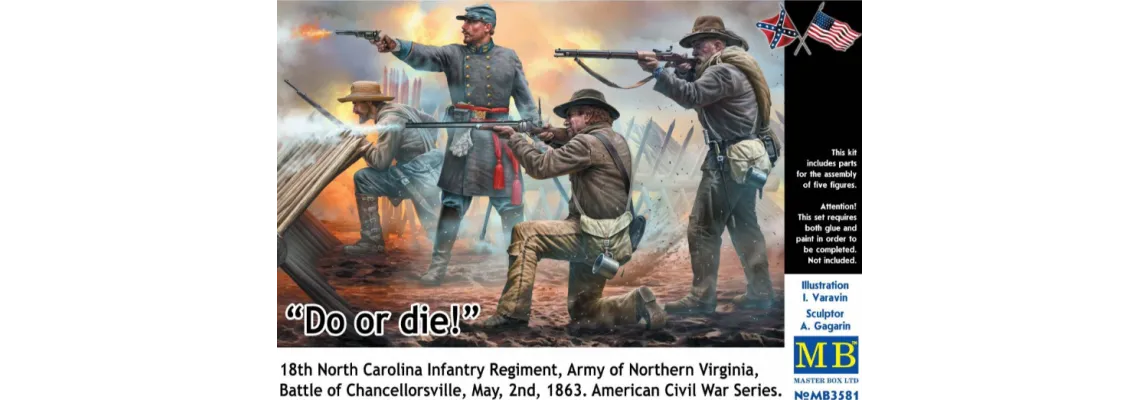 If you are a history enthusiast and love model kits, then the “DO OR DIE!” 18th North Carolina Infantry Regiment plastic model kit by Master Box is just what you need to add to your collection. This 1/35 scale kit is a perfect representation of the brave soldiers of the Army of Northern Virginia during the Battle of Chancellorsville in May 1863.