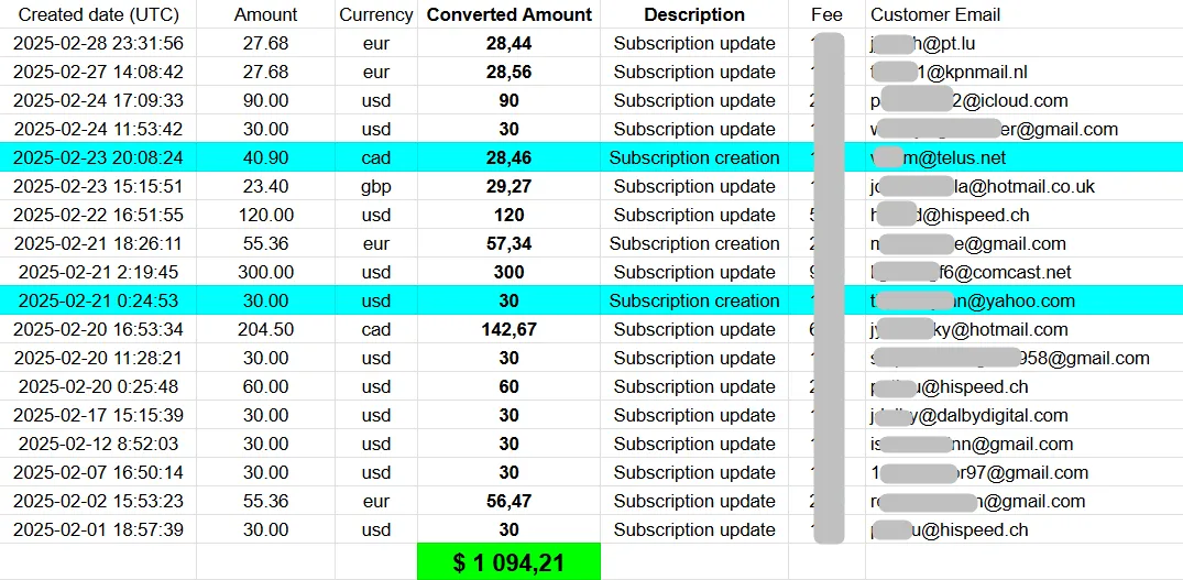 | FEBRUARY 2025 | 3.134$ (68 donations+18 subscribers) | 2870$ |