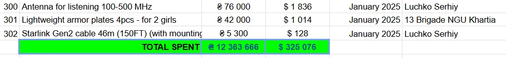| JANUARY 2025 | 2.020$ (32 donations+16 subscribers) | 2980$ |