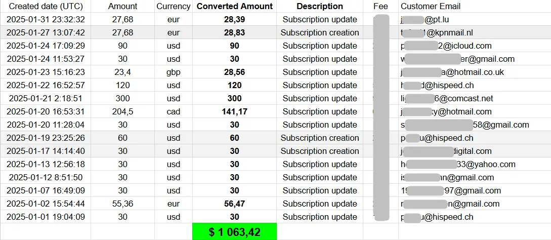 In January we received 3 more subscribers and +120$ monthly.
