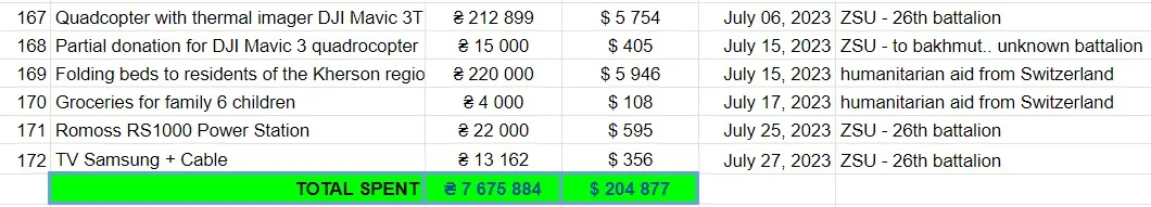 | JULY 2023 | 2.400$ (80 donations) | 13.200$ |