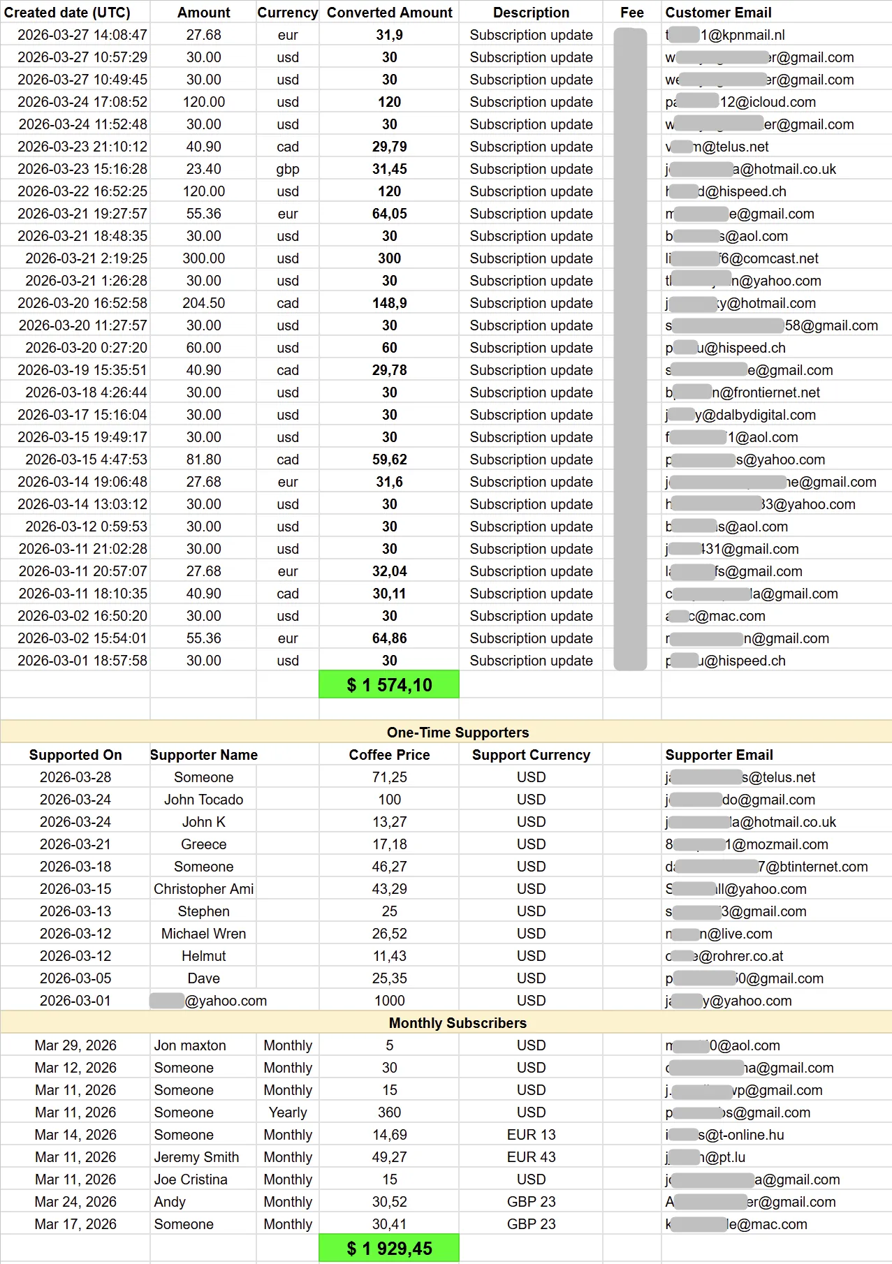 | MARCH 2025 | 3.313$ (65 donations+25 subscribers) | 14.281$ |