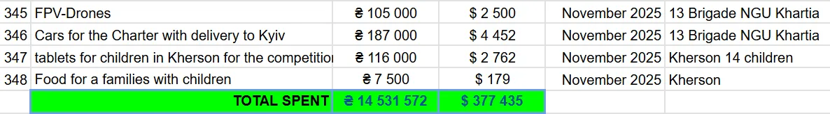 November 2025 ResultsSingle donations through our website: $30Monthly donations: $1628 Donations with new platform: $254 Your TOTAL contributions: $1912 In total, our foundation spent $9900 You can sign up for a monthly donationYou can choose the amount of donations you want. |