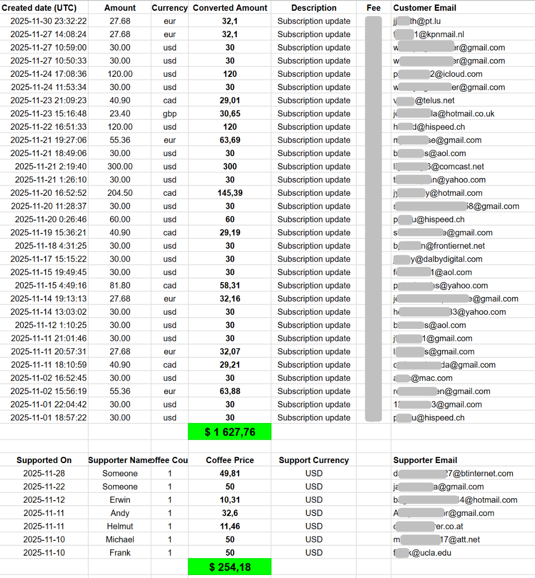 | NOVEMBER 2024 | 2.570$ (56 donations+11 subscribers) | 3.570$ |