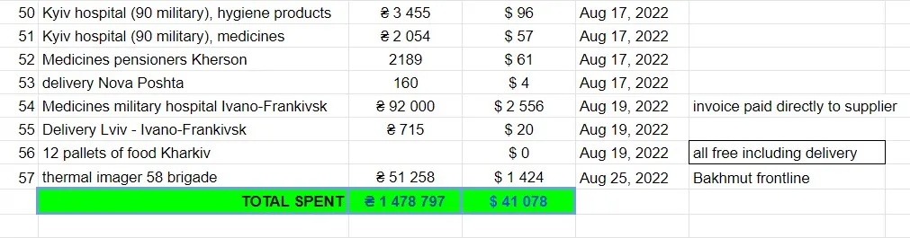 2. We were contacted by a sister of some soldier who is now on the frontline, near Bakhmut with his brigade. This is one of the hottest places. She asked for help with a thermal imager so that at night their brigade could see enemies. We bought a thermal imager the next day and sent it to the front line. The men are happy. Check photos at the gallery on the left column.